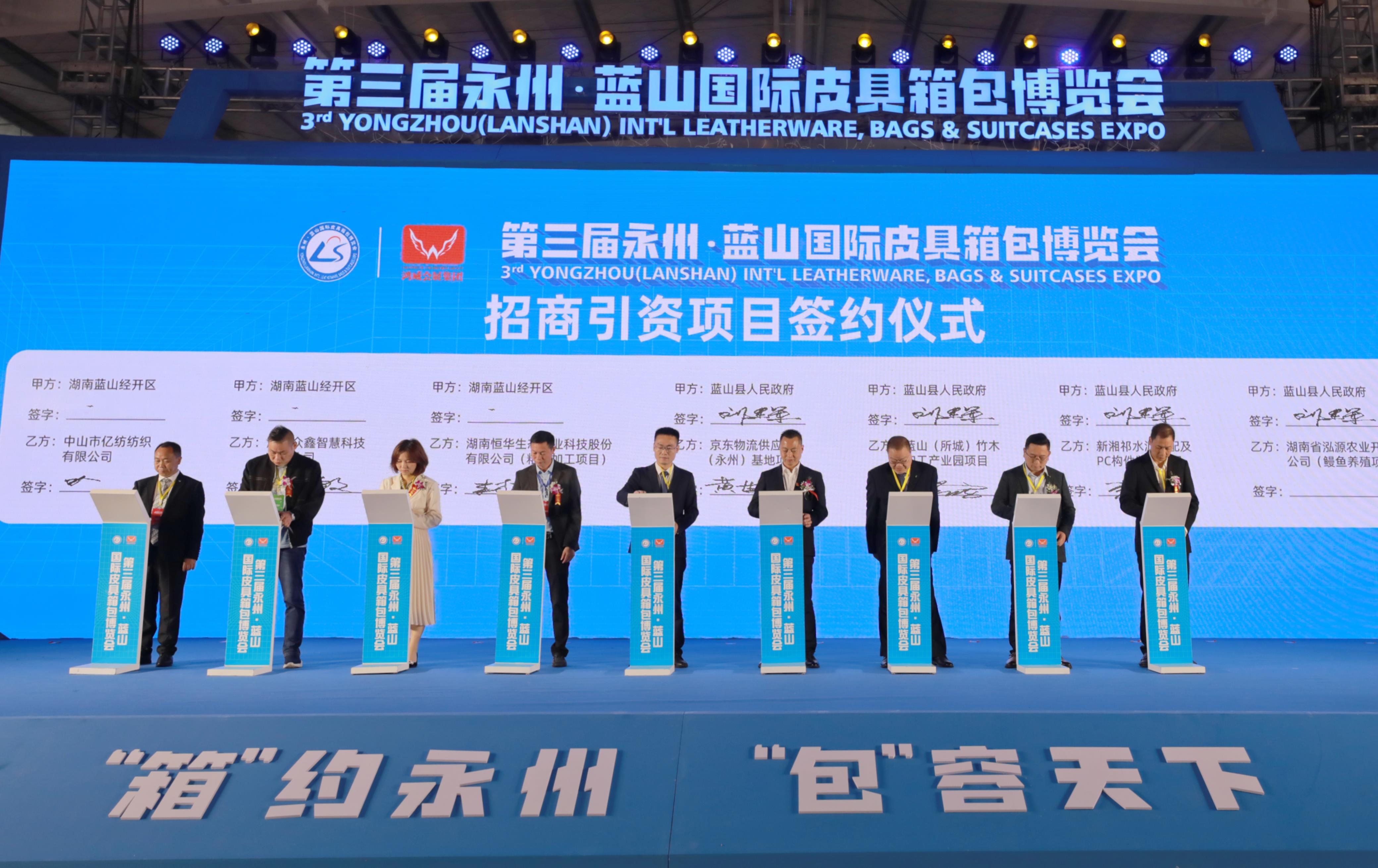 近年来,永州坚持把发展产业当使命、抓项目建设像拼命、视营商环境如生命,紧扣实体经济这个着力点,深入推进向南向海向外开放发展,以五大主导产业为支撑的开放型经济体系加速构建。蓝山县的皮具箱包玩具产业发展势头强劲,呈现集群式落地、抱团式入驻、链条式发展的良好态势。据悉,前两届永州·蓝山国际皮具箱包博览会,共吸引各类企业8000多家、布展商651家参展,观展人数近13万人,现场签约企业20家,总投资达25亿元,实现经济效益、社会效益和旅游效益相统一。